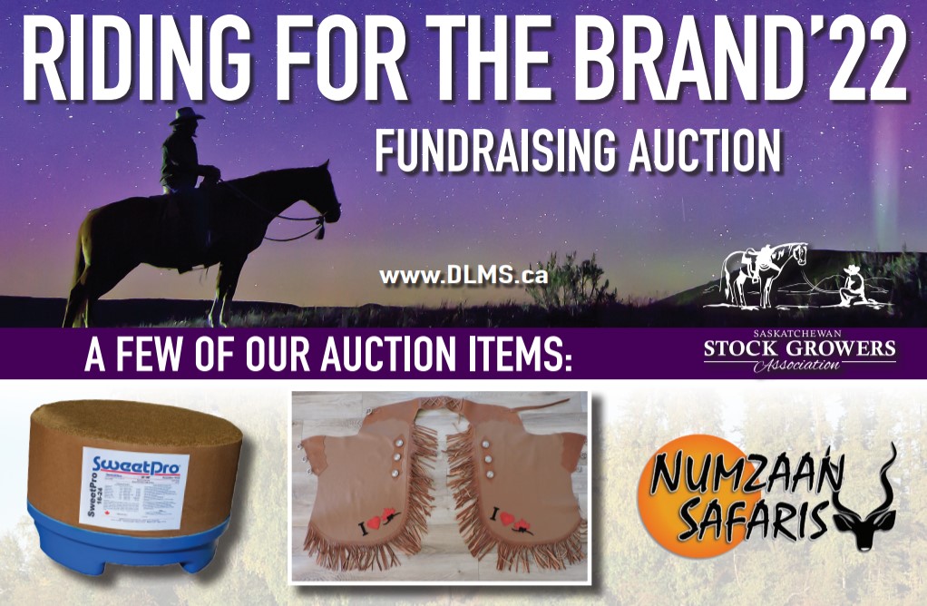 On March 30, 2022 we are hosting our 2nd annual online fundraising auction and we hope to have your support. Due to COVID-19, the 2021 Saskatchewan Stock Growers Association AGM auction was cancelled and is still very uncertain for 2022. After the success of last year’s online auction, we are thrilled to once again be able to partner with DLMS to raise vital funds for your livestock industry.